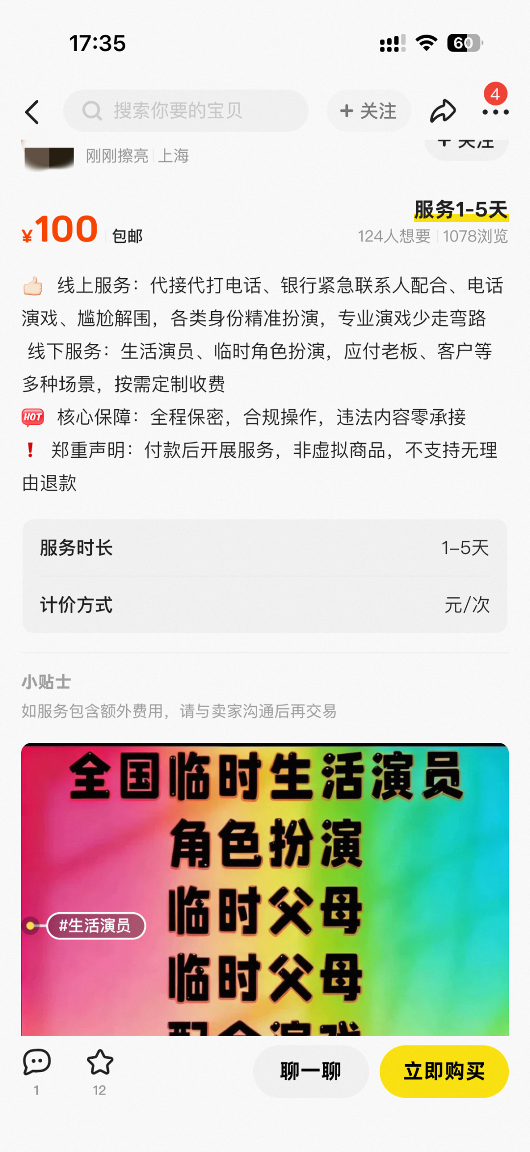 随着春节临近,许多年轻人担心回老家会被父母、亲戚催婚,便萌生出了花钱请人假扮另一半返乡的念头。记者发现,在某二手交易平台,有多个商家提供演员假扮情侣的业务,页面显示有上百人询价。